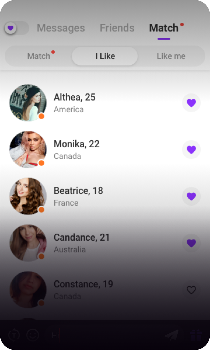 Browse Lounge Profiles - Not ready for immediate chatting? Scroll through user profiles in the lounge area and match with those who catch your interest.